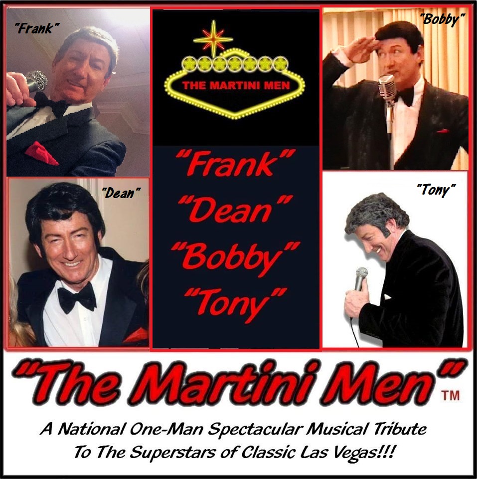 "The Martini Men” TM  feature the full tribute-impersonations performances  as "Frank Sinatra, Dean Martin, Bobby Darin, Tony Bennett, Andy Williams, Paul Anka," and the "younger guys" Rod Stewart, Neil Diamond, Billy Joel, Engelbert Humperdinck and Tom Jones" in a glamorous and high-energy exciting Las Vegas-style-show!